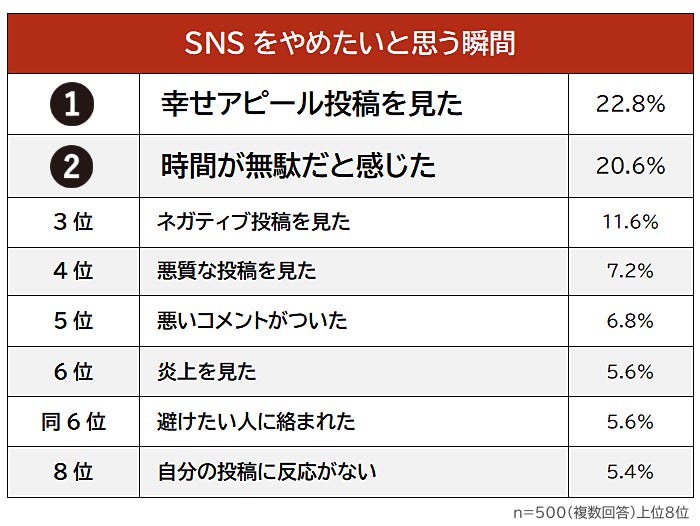 記事監修【SNSをやめたいと思う瞬間ランキング】男女500人アンケート!